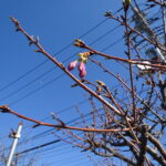 園庭の河津桜の蕾が花を咲かせました。ここに開花宣言させて頂きます。もうすぐ立春を迎え、温かくなってくるのではないでしょうか。春の訪れもすぐそこですね。 - 河津桜に蕾が芽吹き始めました